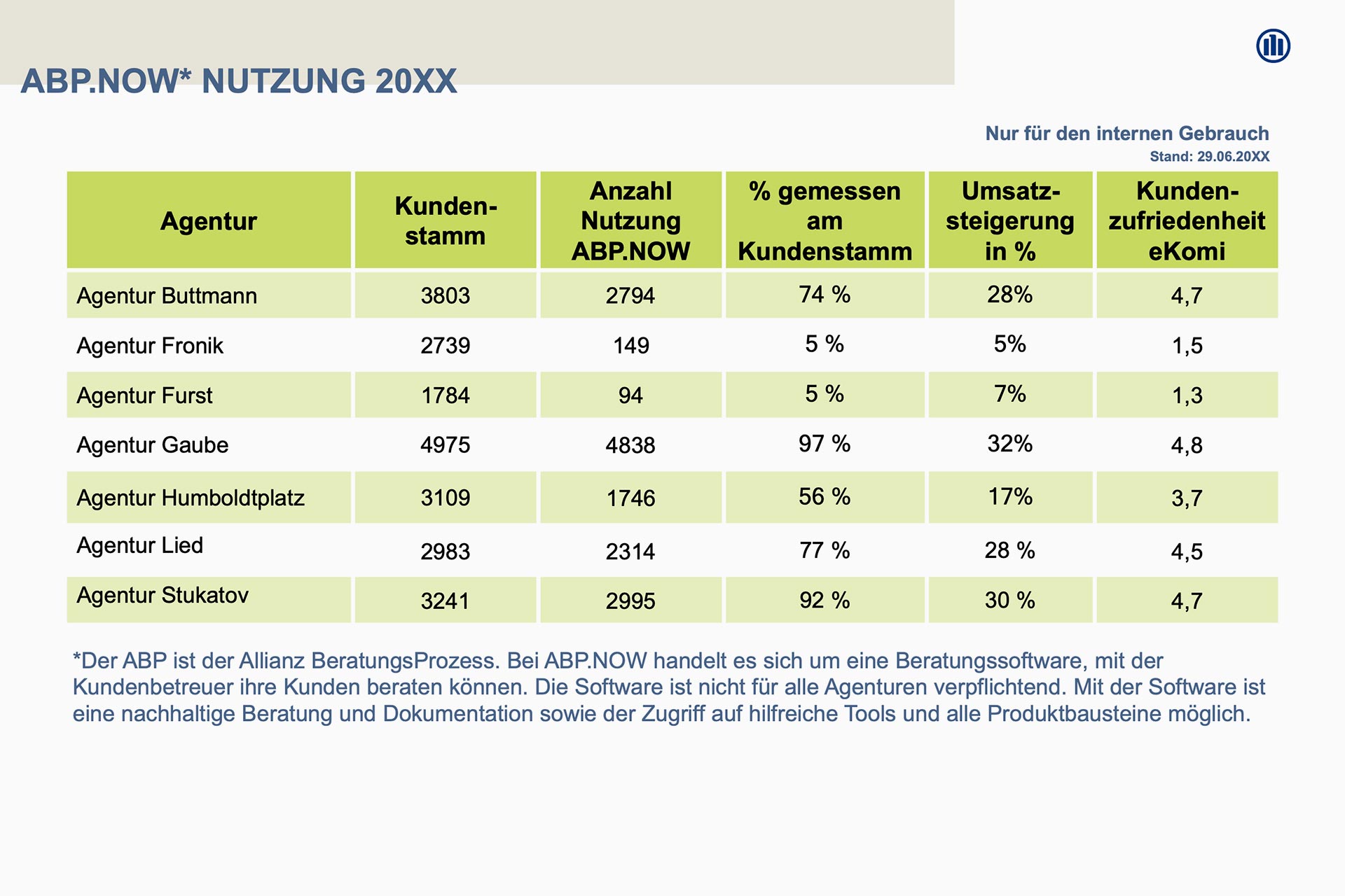Nachfolgend eine E-Mail mit Anhang von Hr. Siebert (Vertreterbereichsleiter) zum Agentur-Ranking bzgl. ABP.NOW-Prozesse.