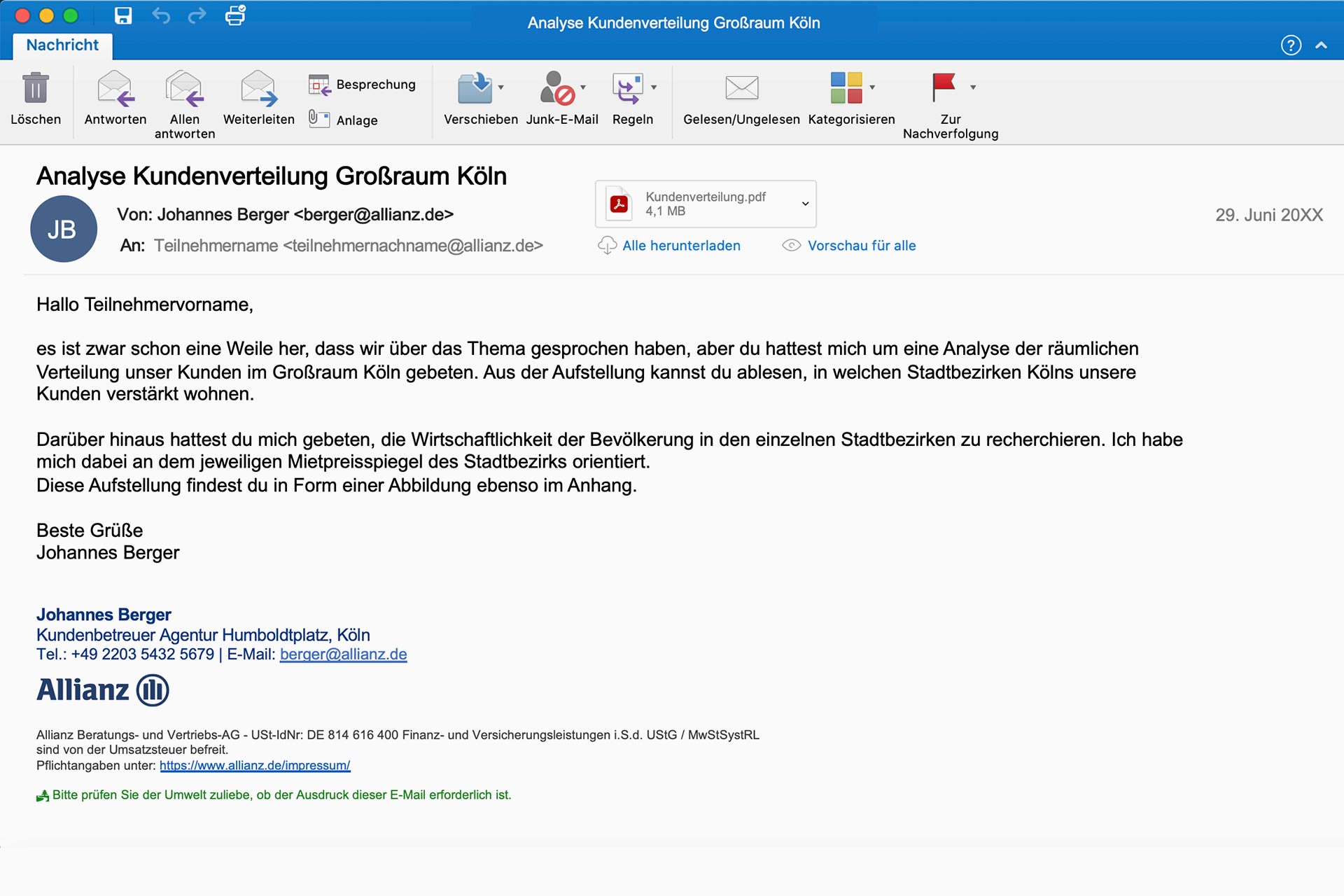 Nachfolgend eine E-Mail mit Anhang von Hr. Berger (Kundenbetreuer) zur Analyse der Kundenverteilung.