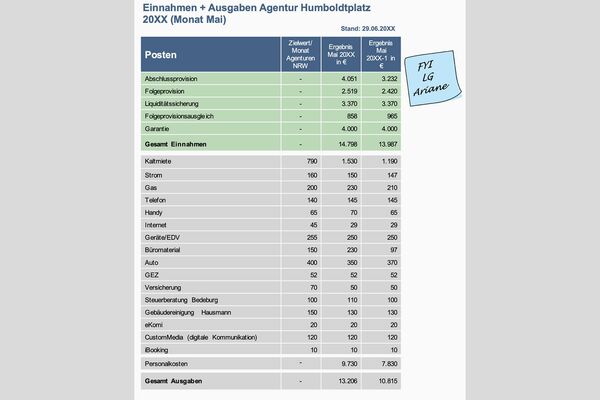 Einnahmen und Ausgaben der Agentur Humboldtplatz