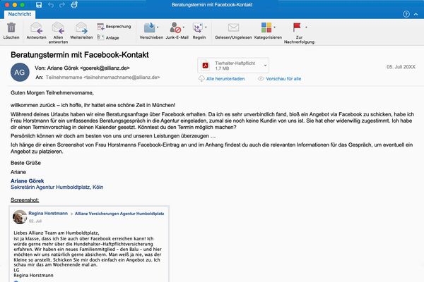 WhatsApp-Nachricht von Fr. Görek zur Aufgabendelegation